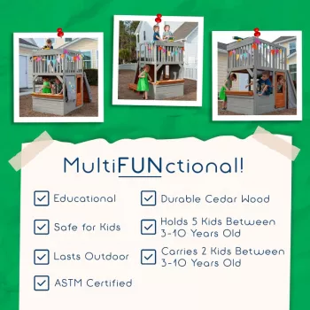 Outdoor Wooden Playhouse for Kids with Sandbox, Bench, Telescope, and Climbing Ramp